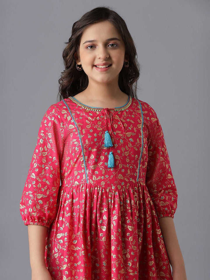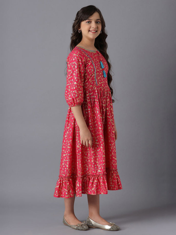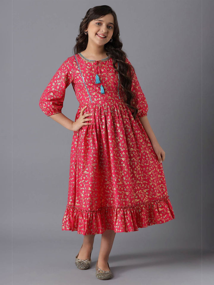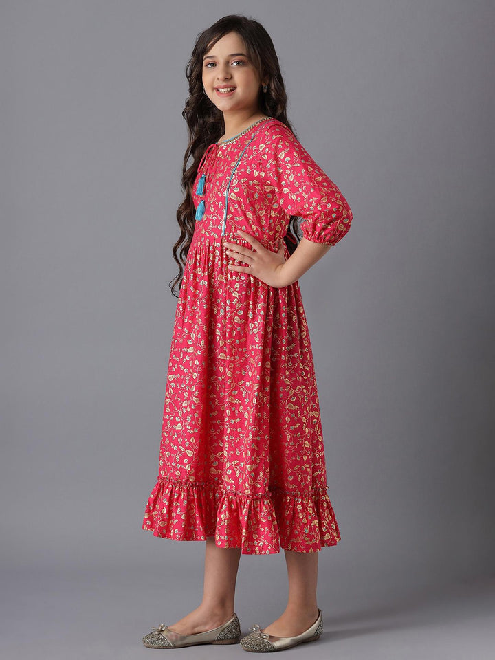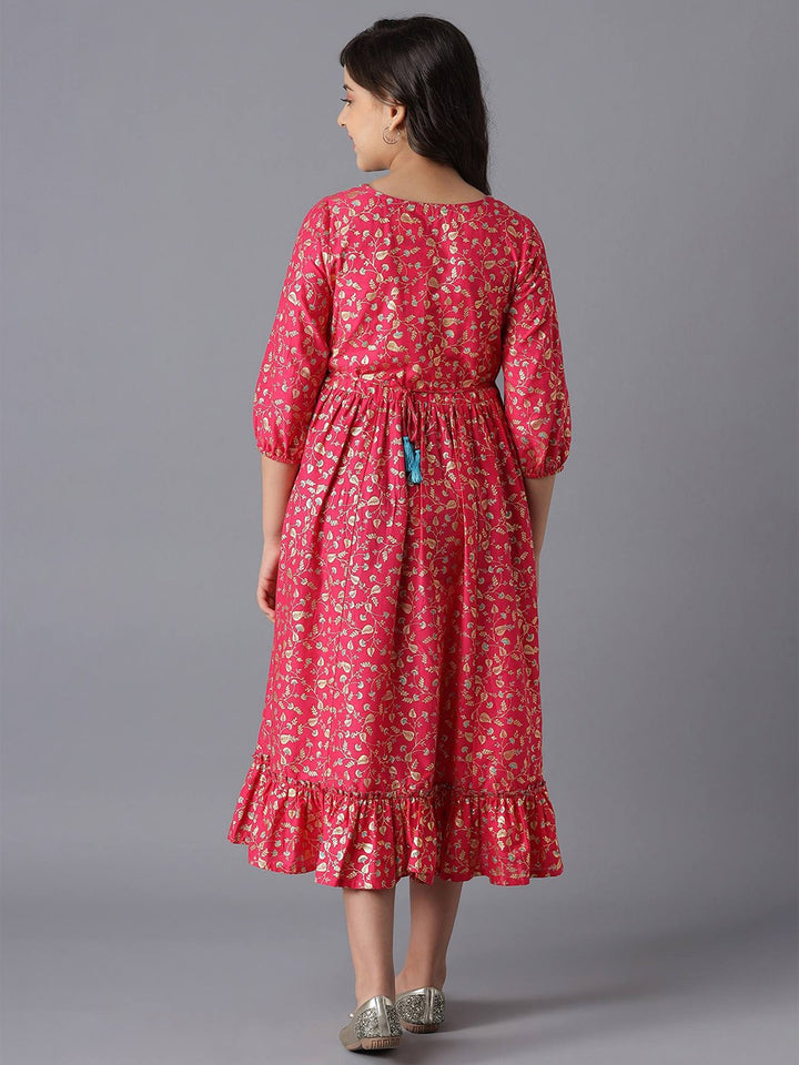 Girls Ethnic Motifs Printed Fit & Flare Midi Dress