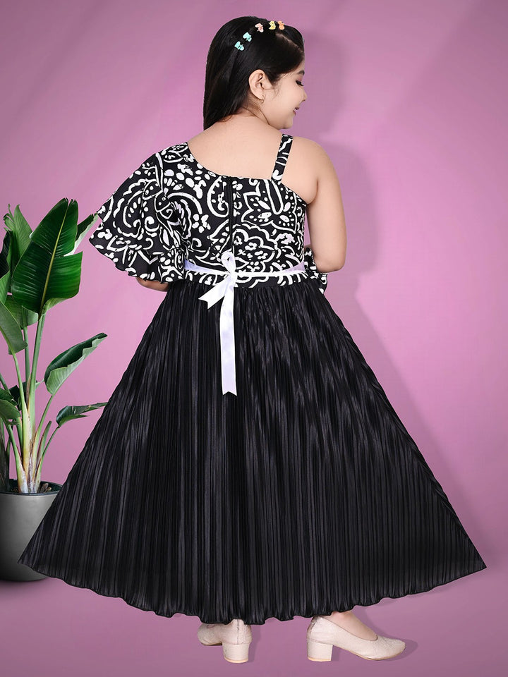 Girls Ethnic Print One Shoulder Satin Maxi Dress
