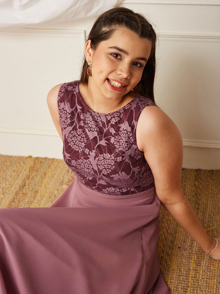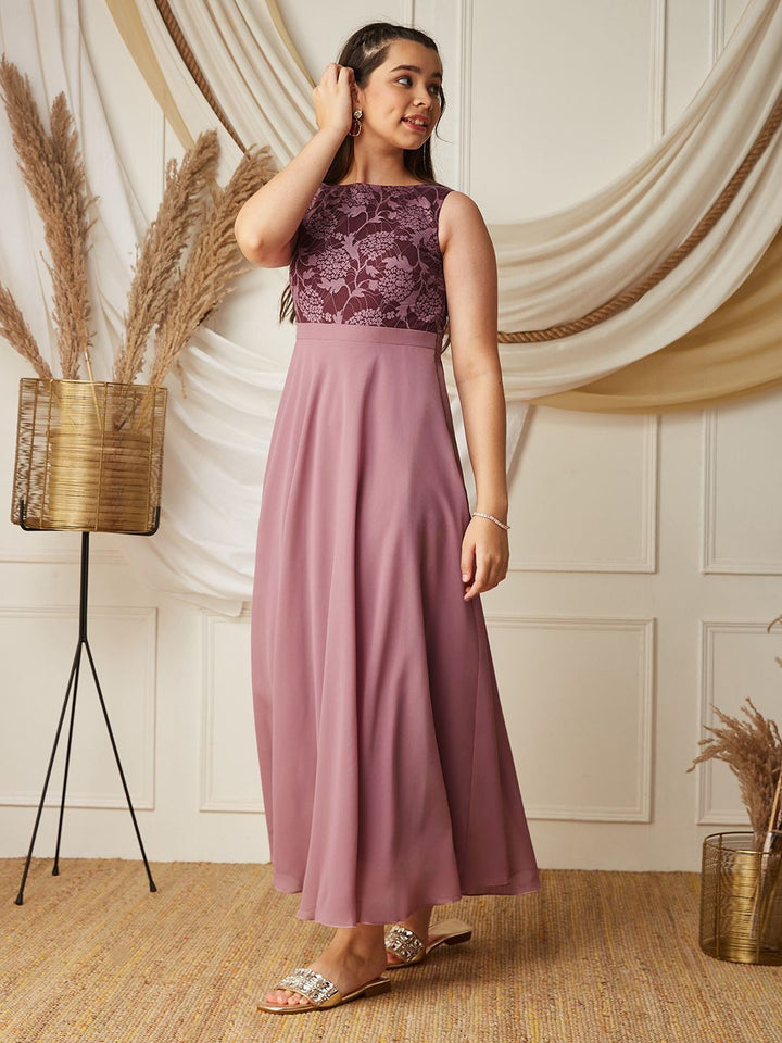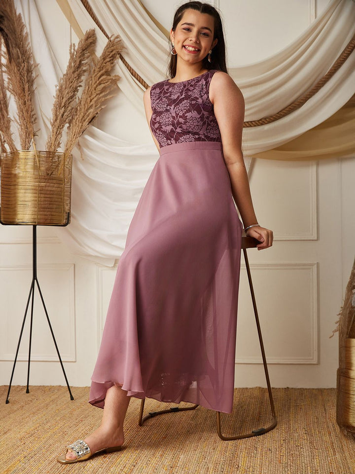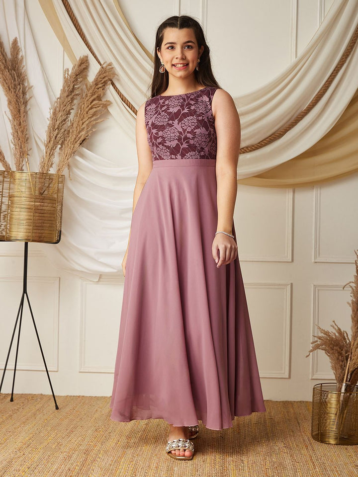 Girls Floral Woven Design Georgette Fit & Flare Maxi Dress