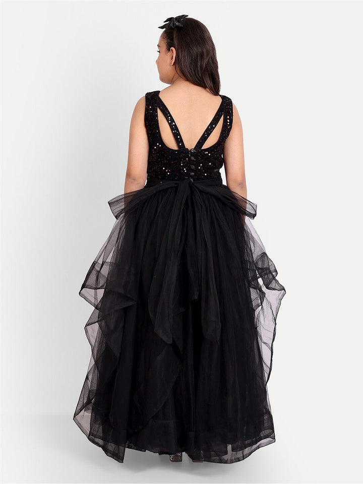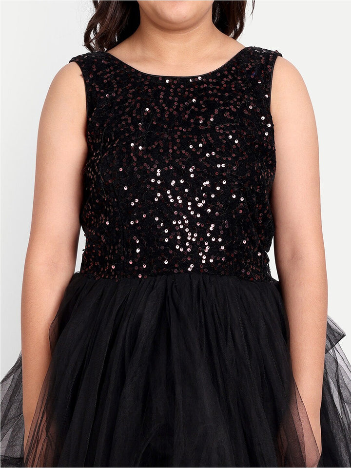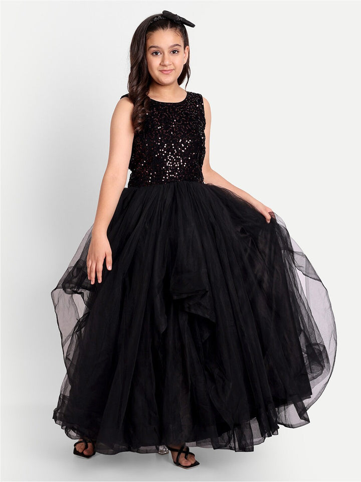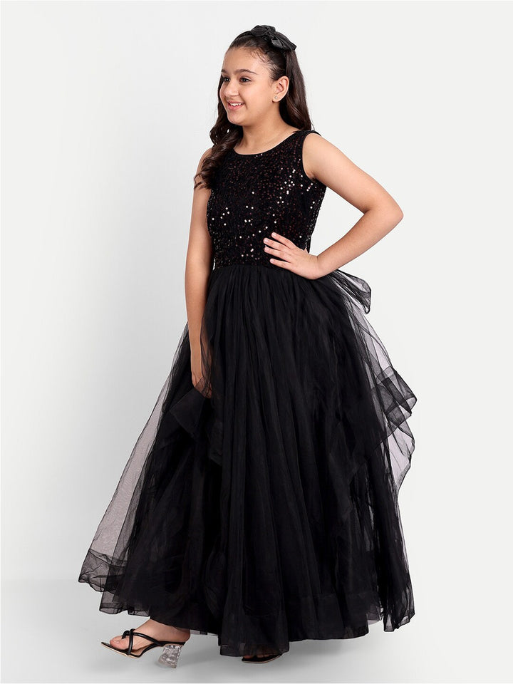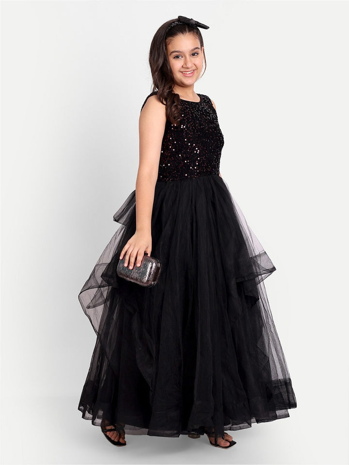 Girls Sequin Embellished Sleeveless Net Maxi Tiered Dress