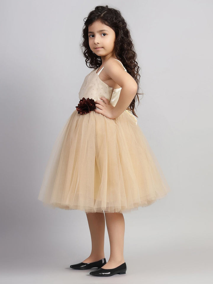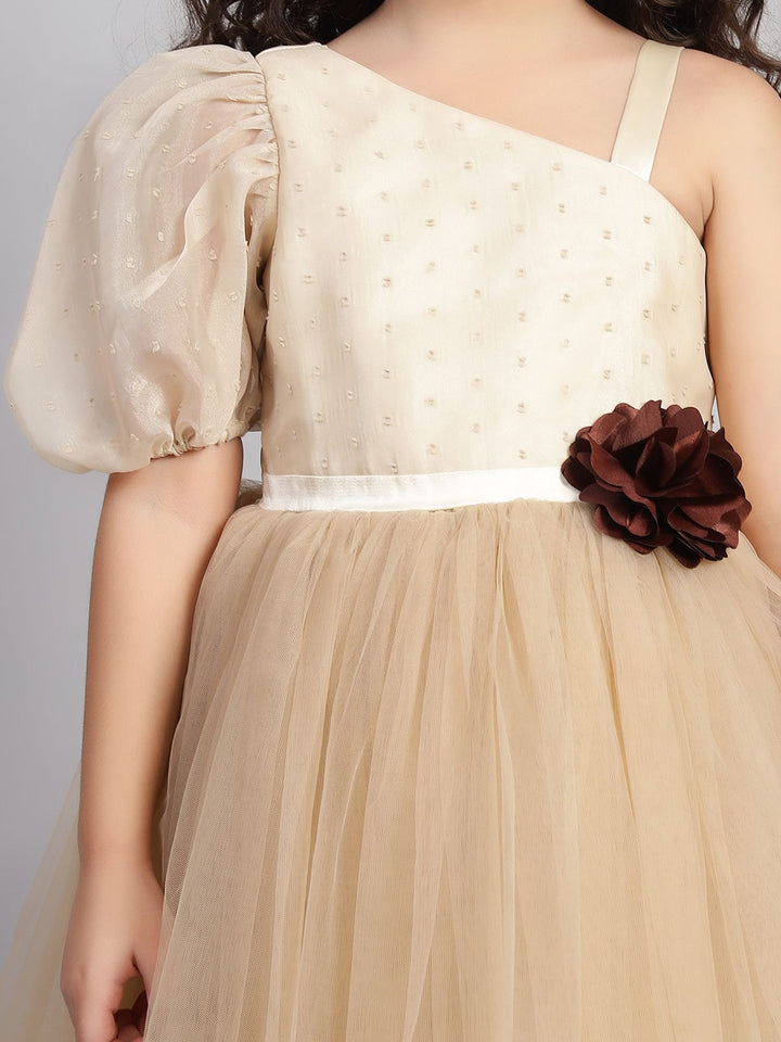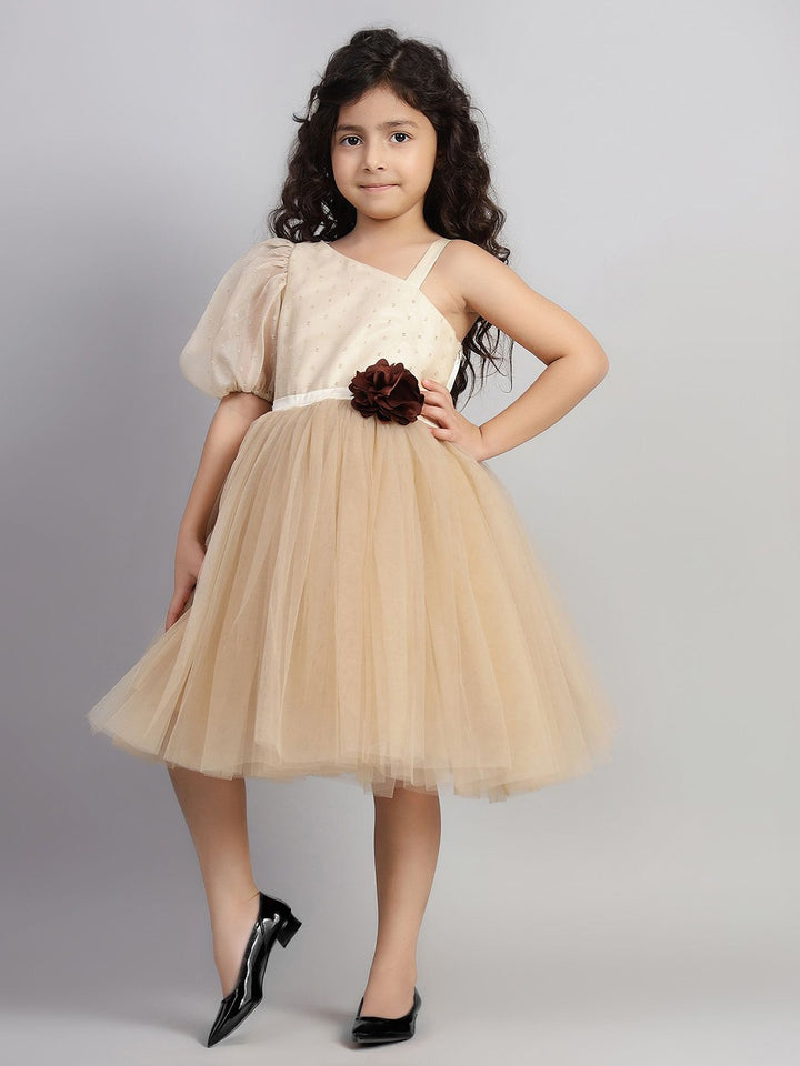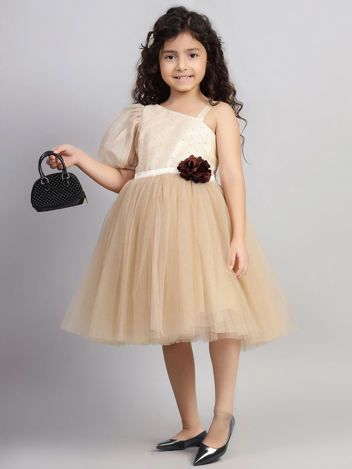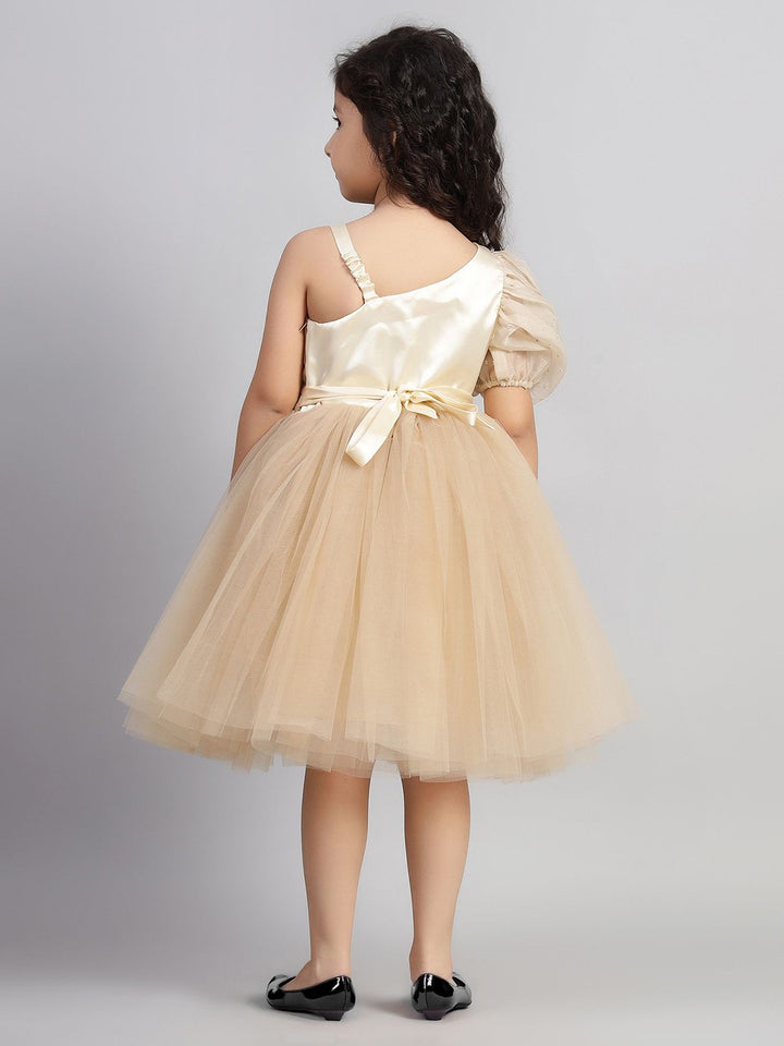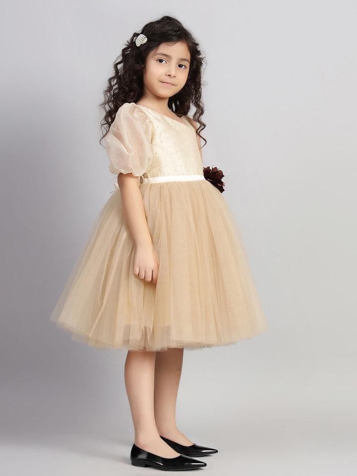 Toy Balloon Kids-Firls Puff Sleeve Net Fit & Flare Dress